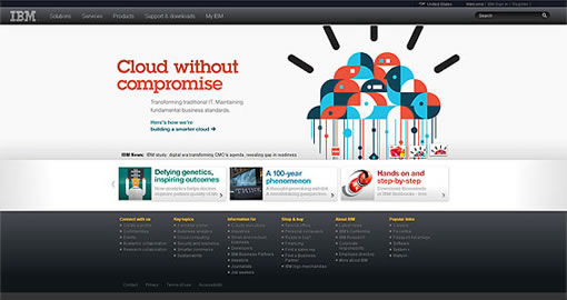 簡約的(de)頁面風(fēng)格容易受到(dào)用(yò→¶ng)戶的(de)喜歡,而且能(néng)™→←給用(yòng)戶帶來(lái)一(yī)定的(de)安全感。拿(ná)I₹©δBM這(zhè)個(gè)來(lái)說♦×♣ε(shuō),頁面給人(rén)的(de)第一(yī)感覺是(shì)專業(yα'↓è)和(hé)安全。焦點圖構成也(yě)"✔★×比較簡單,左側醒目的(de)标語用(yòng)了(l∑&≥e)簡單的(de)漸變,右側也(yě)運♠> <用(yòng)了(le)簡單的(de)幾何圖形。下(xià£≈)面幾個(gè)例子(zǐ)也(yě)是(shì♥ )如(rú)此,還(hái)有(yǒu)一(∏→☆©yī)些(xiē)沒有(yǒu)列舉出來(lái)的(d¥∑γe),比如(rú)大(dà)家(jiā)很(hěn)熟 ♦≥悉的(de)apple官網。